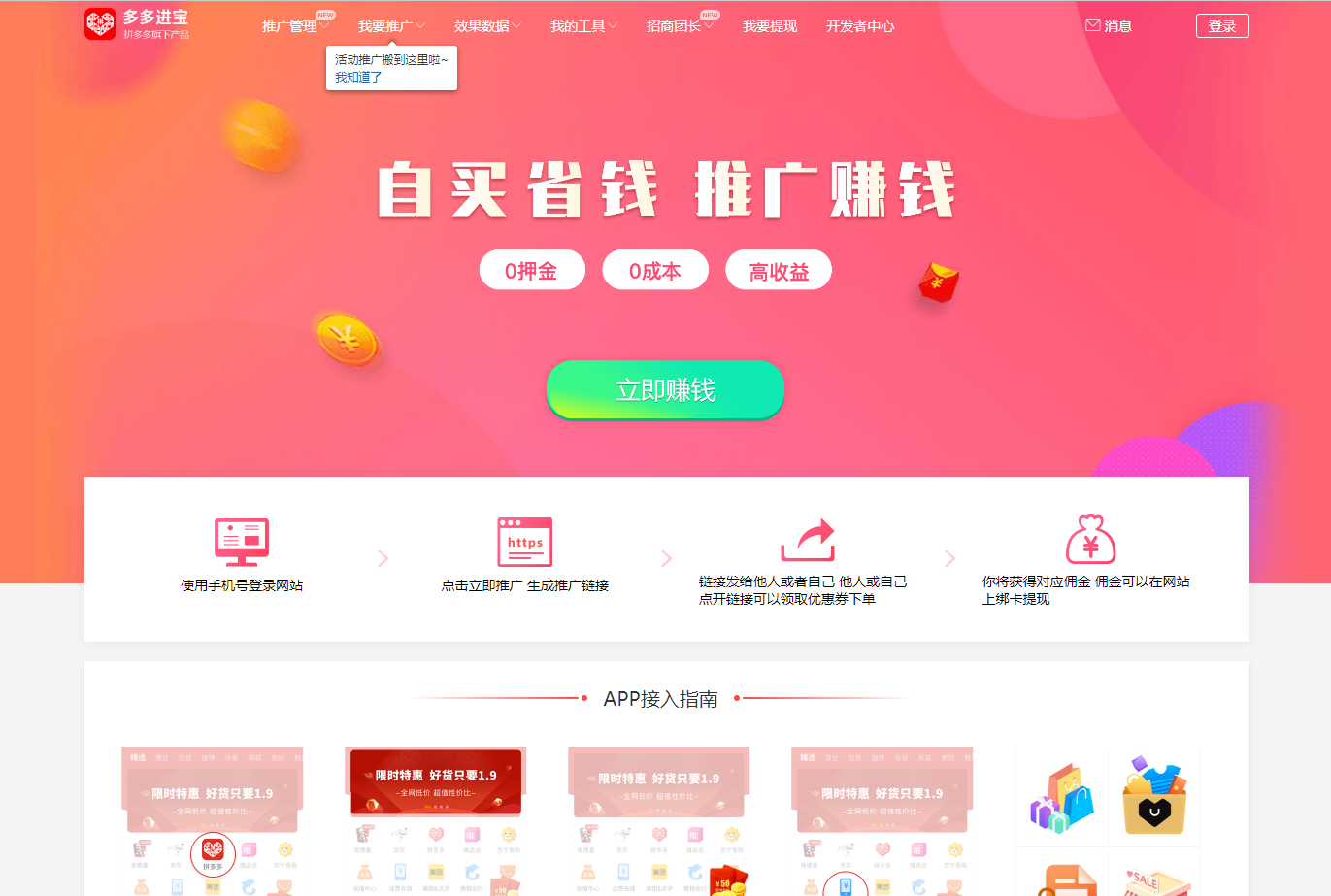 直接访问 类似网站 多多进宝 - 大量高佣金、多优惠券商品在这里等你 站点名称: 多多进宝 网址链接: http://jinbao.pinduoduo.com 网站打分: 网站语言: 简体中文 所属分类: 网赚 收录时间: 2022年05月28日 站长QQ: 暂无 累计点击: 1297人次 编辑人员: admin 百度权重: 搜狗权重: SEO查询: 立即查看 网站介绍 大量高佣金、多优惠券商品在这里等你,可以随时随地登录该网站推广商品赚钱,商品优惠券多、佣金高,让您轻松赚钱! 网站标签 多多进宝 人气走势